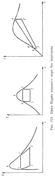 Практически цикл Карно в паросиловой установке получить нельзя, так как в нем невозможно получить высокую температуру пара (максимальная температура должна быть меньше критической). Поэтому термический к. п. д. такого цикла будет сравнительно невелик. Кроме того, вследст-