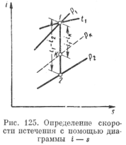 Применение этого уравнения упрощает расчеты, если для рабочего тела имеется диаграмма i — s. В этом случае i1 — i2 берут непосредственно из диаграммы как адиабатный теплоперепад между точкой, соответствующей начальному состоянию (в сосуде), и конечной изобарой (рис. 125).