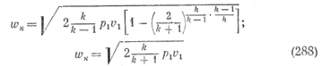 Из рассмотренной схемы работы сопла Лаваля следует, что для вычисления скорости истечения из него следует пользоваться уравнениями (277) или (280) с подстановкой в них соответствено