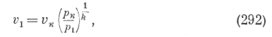 Если в уравнения для определения скорости (280) и секундного расхода (284) вместо отношения давлений p2/p1 подставить вели-