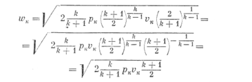 Для вычисления критических значений скорости и расхода необходимо знать к, т. е. такое значение отношения давлений