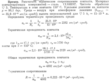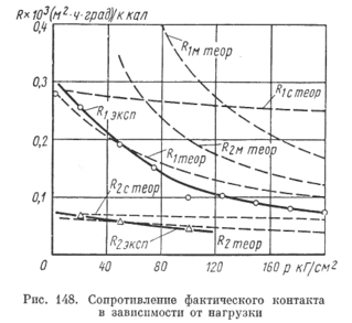 Полное термическое сопротивление контакта определяется чистотой обработки, нагрузкой, теплопроводностью среды, коэффициентами теплопроводности материалов контактирующих деталей и другими факторами.