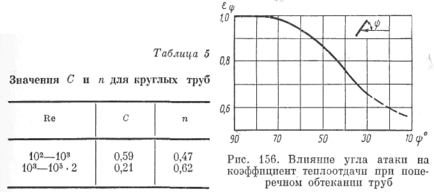 Значения С и п зависят от числа Re и формы обтекаемого тела. Для круглых труб они могут быть выбраны из табл. 5.