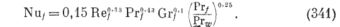 При ламинарном течении, как видно из уравнения (341), теплоотдача существенно зависит от интенсивности свободной конвекции, определяемой значением критерия Грасгофа Gr. При развитом турбулентном режиме развитие свободного движения в жид-кости невозможно и критерий Gr выпадает из числа определяющих. В