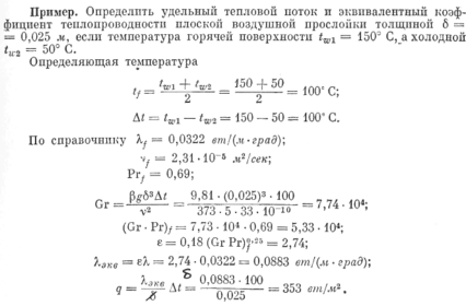 Расчет теплоотдачи в ограниченном пространстве условно принято выполнять как для явления теплопроводности, при этом вводится понятие эквивалентного коэффициента теплопроводности: