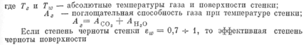 Для разных газов закономерности излучения различны. Для унификации закономерностей излучения в основу расчетов положен закон Сте-фана-Больцмана. Рассмотрим теплообмен излучением между газом, содержащим в качестве излучающих компонентов только С02 и Н20, и окружающей его поверхностью твердого тела. Количество теплоты, которое получается (или отдается) вследствие излучения газа единицей поверхности стенки в единицу времени на основании закона Стефана-Больцмана, имеет вид