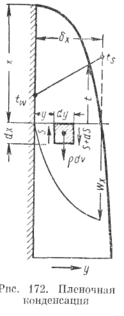 Определение коэффициента теплоотдачи, таким образом, сво-дится к определению толщины x конденсата, которая находится из условия равновесия сил трения, тяжести, поверхностного натяжения и инерции элемента конденсата.