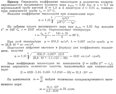 Пример. Определить коэффициент теплоотдачи и количество сконденсировавшегося насыщенного водяного пара рабс=3,92 бар и х=0,7 на вертикальной трубе высотой Н=1,5м и диаметром d=0,65 м, температура поверхности трубы t=55oC.