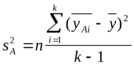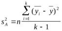 - изменением уровней исследуемого фактора, т.е. дисперсия между выборками sA2 :