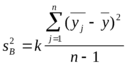 Чтобы оценить фактор случайности, следует определить средневзвешенную дисперсию по столбцам, обусловленную влиянием фактора В и фактора случайности (S2B – S2ош), и вычесть из нее рассеяние в средних по строчкам, связанное с влиянием фактора В и фактора случайности (учитывая, что дисперсия среднего в n раз меньше дисперсии единичного измерения: S2B – S2ош / k). После преобразований получится, что: