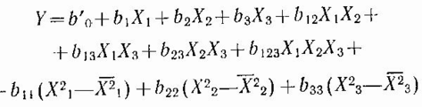 | Номер | Xo | X1 | X2 | X3 | X1X2 | X1X3 | X2X3 | X1X2X3 | X1п2 | X2п2 | X3п2 | Yj |