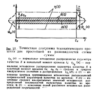 Погрешности контролируемых параметров качества могут быть представлены в виде суммы большого числа частных погрешностей. Простейшей разновидностью схемы суммы является сумма, представленная одной группой случайных слагаемых. Число слагаемых и характеристики их распределения не изменяются ни во времени, ни в зависимости от других аргументов. При этом слагаемые взаимонезависимы, среди них нет резко доминирующих, и их число может быть устремлено к бесконечности. Такая ситуация соответствует условиям теоремы Ляпунова. Соответственно, при такой схеме распределение значений величины суммы соответствует нормальному закону распределения. Точностная диаграмма с