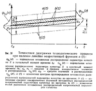 Рис. 17. Точностная диаграмма технологического процесса для простейшей из разновидностей схемы суммы: fto(x), ftk(x) – нормальное мгновенное распределение параметра качества Х в начальный и конечный моменты времени соответственно; a0,, ak,, so, sk – среднее и среднее квадратичное значения распределений fto(x), ftk(x), a(t) изменение центров группирования мгновенных распределений погрешностей параметра качества; b(t) – изменение средних квадратичных значений.