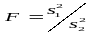 По измеренным в ходе опыта значениям вычисляется экспериментальное значение F-критерия, равное отношению двух дисперсий s1 и s2 c соответствующими степенями свободы f1, f2:
