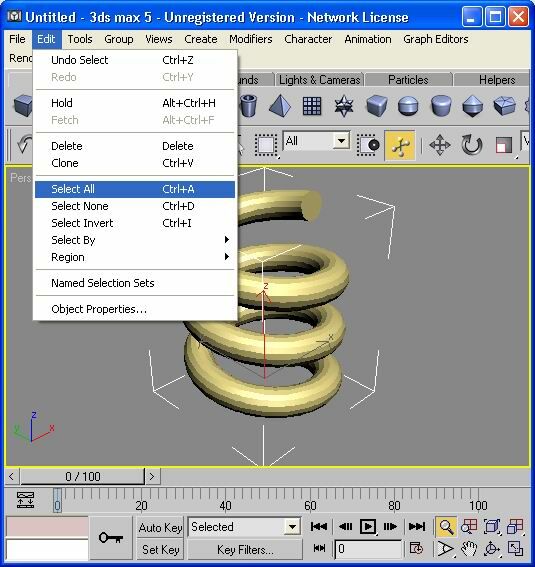 Select All (Выбрать Все) - позволяет выделить все нескрытые и «размороженные» объекты (смысл этих терминов будет описан далее).