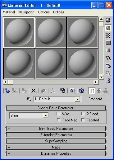 Редактор Материалов (Material Editor). Вызов Material Editor (Редактора Материалов) осуществляется через пункт падающего меню, но все же удобнее использовать функциональную кнопку в Main Toolbar (Основной Панели). Обратите внимание на ключевые моменты этого нового окна .