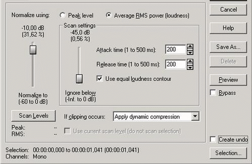 ормализация звука. Функция Normalize, как и функция Volume, увеличивает громкость звука, но несколько иным образом. Она сначала исследует файл на предмет самого высокого уровня сигнала, а потом вычитает этот уровень из максимально возможного, который равен 100% (или тому значению, которое вы установили). Функция Normalize использует получившуюся разность при увеличении громкости звуковых данных. В конце концов, самый высокий уровень сигнала в данном файле доводится до 100% (или до указанного вами значения), а более низкие уровни пропорционально увеличиваются. Другими словами, если самый высокий уровень сигнала в вашем файле равен 80%, а максимально возможный уровень — 100%, то функция Normalize вычитает 80% из 100% и результат становится равен 20%. Затем громкость всех звуковых данных в вашем файле увеличивается на полученные 20%. Таким образом, вы можете использовать функцию Normalize, чтобы увеличить громкость ваших звуковых данных без последствий, т. е. без отсечения части данных. Чтобы использовать функцию Normalize, сделайте следующее: