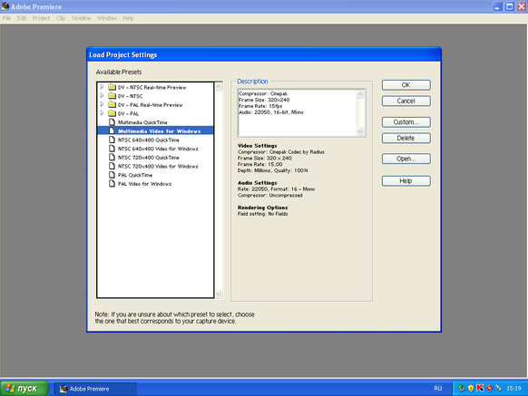 Лабораторная работа. Видео. AdobePremier. Настройки, форматы, проект.