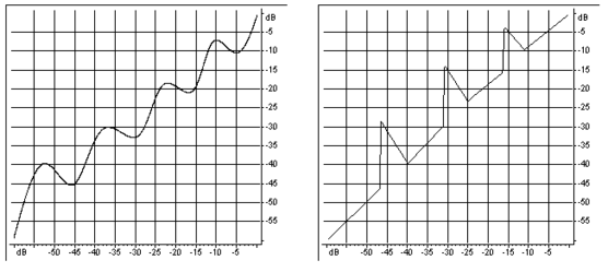 Скорость воспроизведения изменяется по времени в соответствии с графиком. Для точек, расположенных выше средней линии скорость увеличивается, для точек, расположенных внизу, - уменьшается. Частота звука изменяется соответственно. Общая продолжительность звучания записи также изменяется в соответствии с формой кривой.
