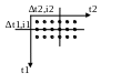 | Пусть Xн(t1,t2), тогда процесс дискретизации: X(i1,i2)=Xн(i1∆t1, i2∆t2) i1 и i2 – положения соответствующих элементов. |
