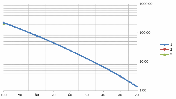 | 20 | 1,6 | 3,47 | 7,19 | 13,9 | 26,65 | 48,86 | 86,11 | 147,98 | 246,06 | |