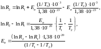 | (1/T1)*10^-3 | ln(R1) | (1/T2)*10^-3 | ln(R2) | |
