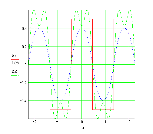 Так как n- целое число то в разложении функции в ряд Фурье нужно учитывать только первые три члена разложения. Другие члены нет смысла учитывать, так как такие частоты не проходят через апертуру объектива.