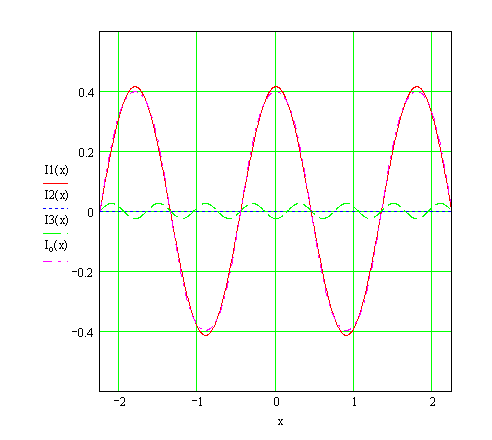 I 1- первая гармоника; I2- вторая гармоника; I3-третья гармоника; I0- суммарный график