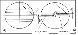 Рис. 15. Схема измерения толщины прозрачных (а) и непрозрачных (б) пленок.