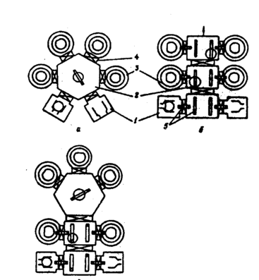 Структурно-компоновочные варианты оборудования кластерного типа бывают с радиальной (рис.3а), линейной (рис.3б) и смешанной (рис.3в) архитектурой [2]. Использование оборудования кластерного типа позволяет реализовать целый ряд преимуществ, основными из которых являются: