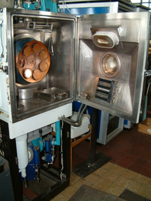 Также, вакуумное оборудование заданной высокой производительностипредставлено выше на примере вакуумной автоматической линии для нанесения на архитектурное стекло размером 3х6 м многослойного энергосберегающего покрытия, которое обрабатывается за 30 секунд!