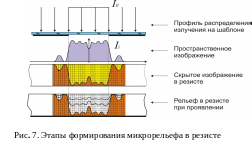 Таким образом, в процессе микролитографии можно выделить следующие этапы, основанные на принципиально различающихся физико-химических явлениях (рис.7):