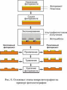 Независимо от разновидности процесс микролитографии включает следующие основные этапы (рис. ):