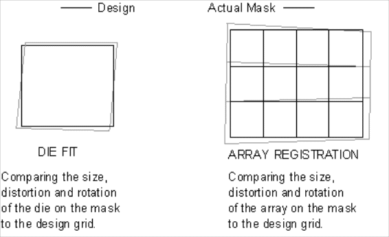 ри изготовлении фотошаблонов могут появиться такие погрешности как масштаб, разворот неортогональность отдельных модулей, а также координатные погрешности их размещения в массиве на рабочем поле шаблона:
