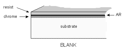 Как объект изготовления фотошаблон представляет собой стеклянную или кварцевую пластину (substrate) толщиной не менее 3 мм, на одной стороне которой напылено маскирующее покрытие, чаще всего из хрома. Иногда дополнительно наносится слой антиотражающего покрытия (Anti Reflectiv - AR).