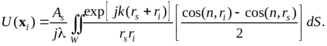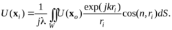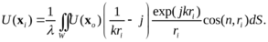 представляет собой сферическую волну, распространяющуюся из точки xo и умноженную на коэффициент наклона. При этом каждая точка xo отверстия W служит источником таких волн, которые суммируются в точке xi.
