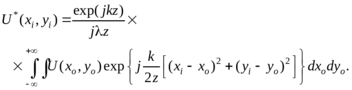 Этот результат, справедливый для случая, когда отверстие освещается одиночным точечным источником, известен как формула дифракции Френеля — Кирхгофа.