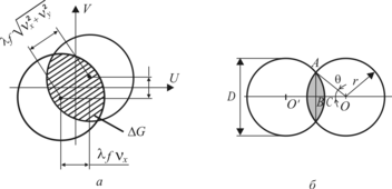 Площадь затемненной на рис. 7.10, б области перекрытия кругов