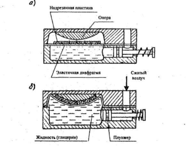 Пластину помещают проскрайбированной поверхностью на упругую опору и прокатывают последовательно в двух взаимно перпендикулярных направлениях твердым валиком диаметром 10 – 30 мм. Усилие нагружения подбирается в зависимости от жесткости опоры. Меньший диаметр валика и более жесткие опоры используются при меньших отношениях длины кристалла к толщине пластины (1/Н).