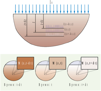 Уменьшение интенсивности света в слое толщиной dz пропорционально величине интенсивности падающего на этот слой света и толщине поглощающего слоя: