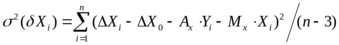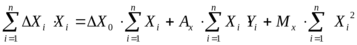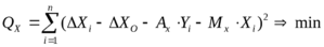 Минимизация сумм квадратов случайных погрешностей (квадратов отклонений) Qx и Qy, записанных в табл. 2 уравнениями (3.3) и (3.4), дает систему нормальных уравнений (3.5)-(3.7).