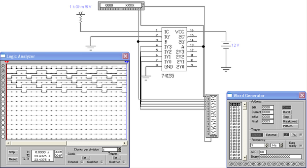 Схема 5. Исследование дешифратора ИМС К155ИД7