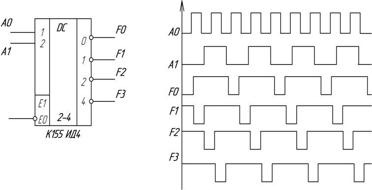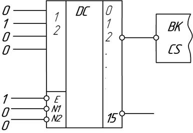 Адресация осуществляется подачей сигналов на вход данных (0010) –активирует сигнал на выходе 2.