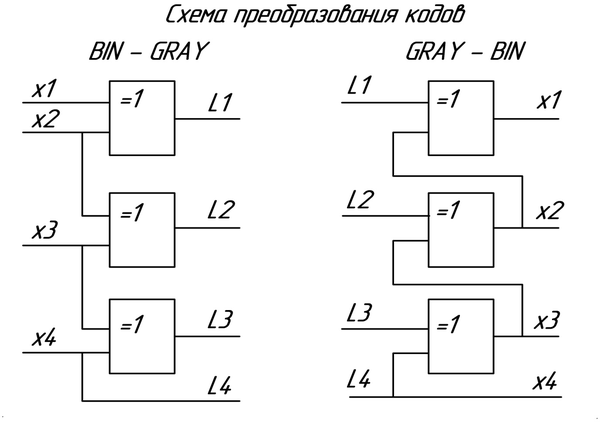 Код Грея используется для преобразования угла поворота вала в цифровой код. Контрольные коды позволяют контролировать правильность передачи или считывания данных и восстанавливать исходные данные. Бывают четными и нечетными. Эти коды могут обнаруживать как единичные сбои так и нечетное количество сбоев (чаще всего встречающихся – помехи), возможность обнаружения до 90% ошибок.