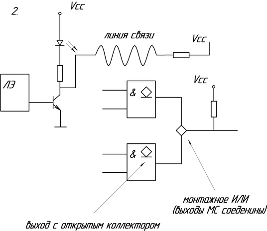 2. Выходы с открытым коллектором предназначены для подключения схем индикатором, возможна работа линии связи, выходы можно соединять между собой.