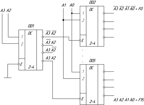 аращивание дешифратора происходит через стробирующие входы из DC 2-4 DC 4-16