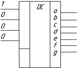 функциональный узел, в котором каждому набору двоичных входных сигналов соответствует активный сигнал только на одном из выходов, номер которого равен входному двоичному коду.