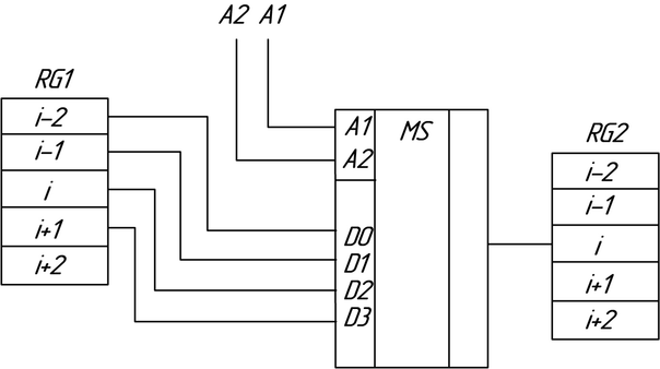 ередача информации из RG1 в RG2 может быть осуществлена как без сдвига так и со сдвигом, в сторону старших или младших разрядов.