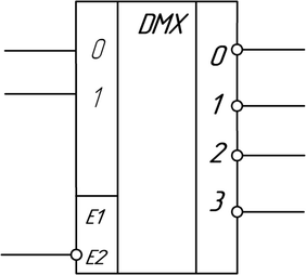 Демультиплексор – устройство, передающее сигнал с одного входа на один из выходов, где адрес выхода задается двоичной комбинацией на входе. Пример: задается адрес входа 11, на выходе получаем 3.