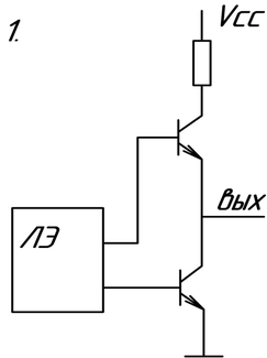 . Обычный типовой выходной каскад, выходы ИМС соединять нельзя.